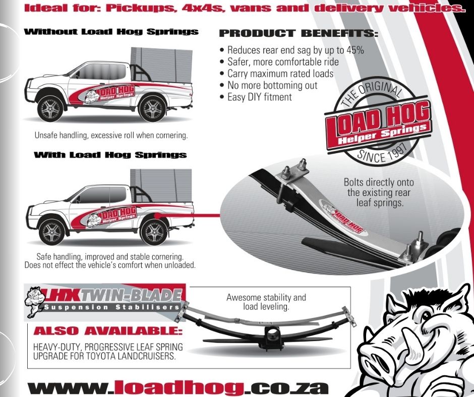 Since 1996 we have been helping thousands of vehicle owners get the most value from their leisure and commercial vehicles. Our range of bolt-on suspension stabilisers improves the ride-quality and weight carrying ability of your bakkie or 4×4. Our systems provide improved stability and control to partially or fully loaded vehicles without affecting the comfort of the un-loaded ride.